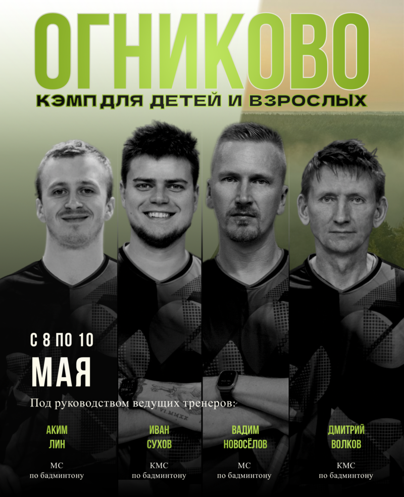 Друзья! 🔥 С 8 по 10 мая, на праздничные выходные, объявляем набор на наш бадминтонный Кэмп выходного дня в Огниково 🏸🏕️💚